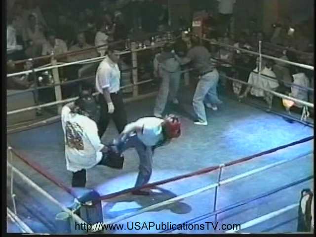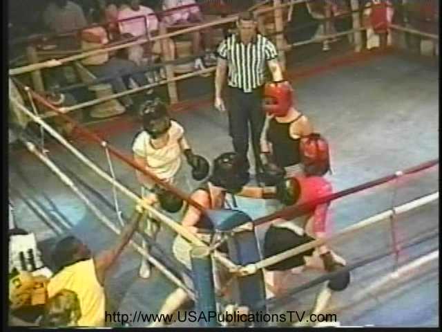This fighting is unpredictable (pictured). In this tape, for example, you will see a sneak punch from behind that hits the surprised and hurt recipient in the back of the head. And when it's all four girls in the ring, it can be wild! Sometimes one girl will quit, leaving her partner facing two opponents. Teammates may (and often do) team up against one opponent The beatings in those cases are brutal. Here, the females lose all control and the fighting is breathtaking! 1 action packed hour.